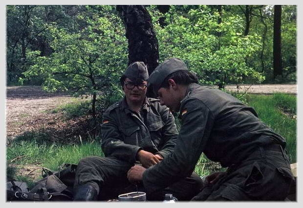 Siegfried und ich kochen aus dem EPA ein lecker Süppchen im Feldkochgeschirr - - - -